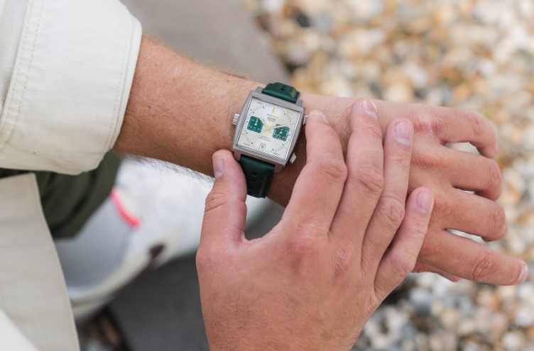 Wearing the TAG Heuer Monaco Chronograph Racing Green